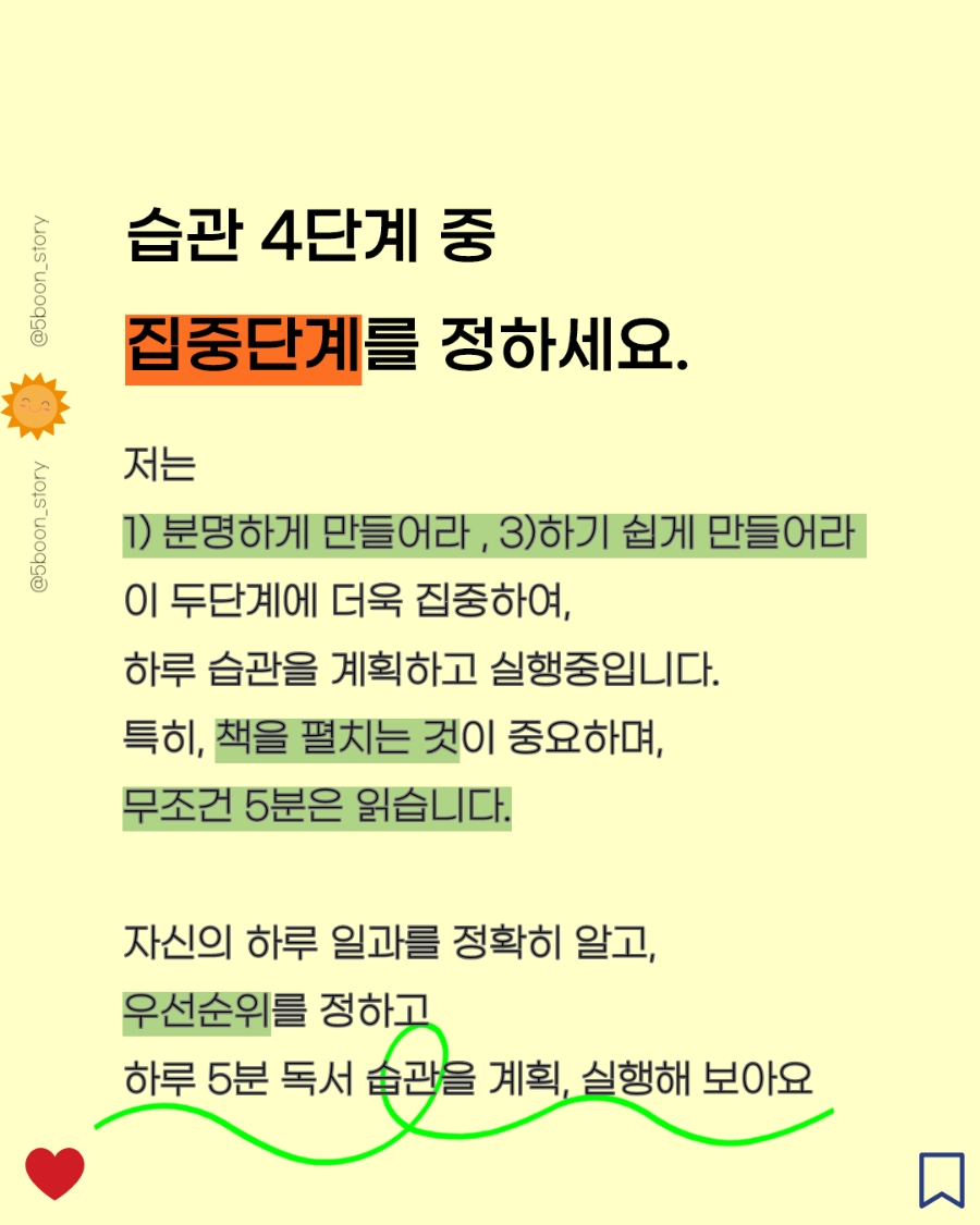 그리고 책을 펼쳤으며 무조건 5분은 꼭 읽으세요.